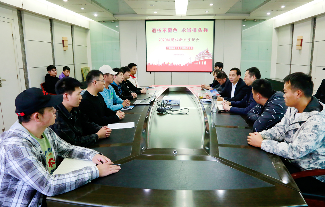 为深入了解学院2020级退伍新生学生学习、生活和思想状况,帮助他们解决学习、生活中的实际困难,整合全院退伍学生资源,进一步推动全校国防教育和征兵工作的顺利开展,10月14日下午,应用技术学院在行政楼三楼会议室召开 “退伍不褪色,永当排头兵”2020级退伍新生座谈会。校人民武装部副部长、学生工作处副处长张志浩出席座谈会,应用技术学院党委副书记万金店主持会议。30余名2020级退伍新生参加座谈。