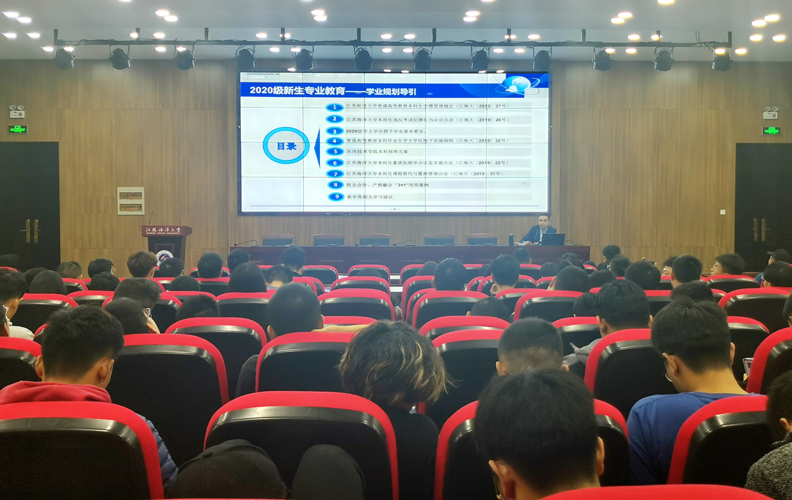 10月18日,应用技术学院在多功能报告厅和多媒体教室分批次开展了五场2020级学生学业及规划导引专业教育系列讲座。本次讲座面向2020级所有对口单招和专转本新生,由副院长隋福利主讲。
