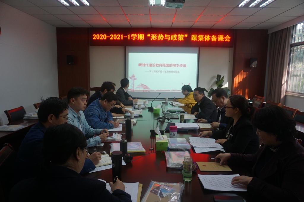10月21日下午,马克思主义学院在会议室举行本学期“形势与政策”课集体备课会,校党委副书记史顺良、“形势与政策”课教师、学院相关人员等参加备课会,会议由学院副院长沈春梅主持。
