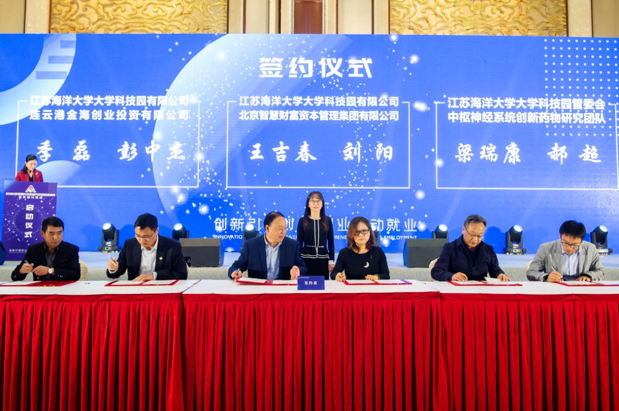 活动现场,我校海洋技术与测绘学院与中孵高科产业孵化(连云港)有限公司、海略(连云港)科技有限公司;江苏海洋大学大学科技园与北京智慧财富集团有限公司、中枢神经系统创新药物研究团队、连云港金海置业投资有限公司进行了共建、战略合作等协议的现场签约。
