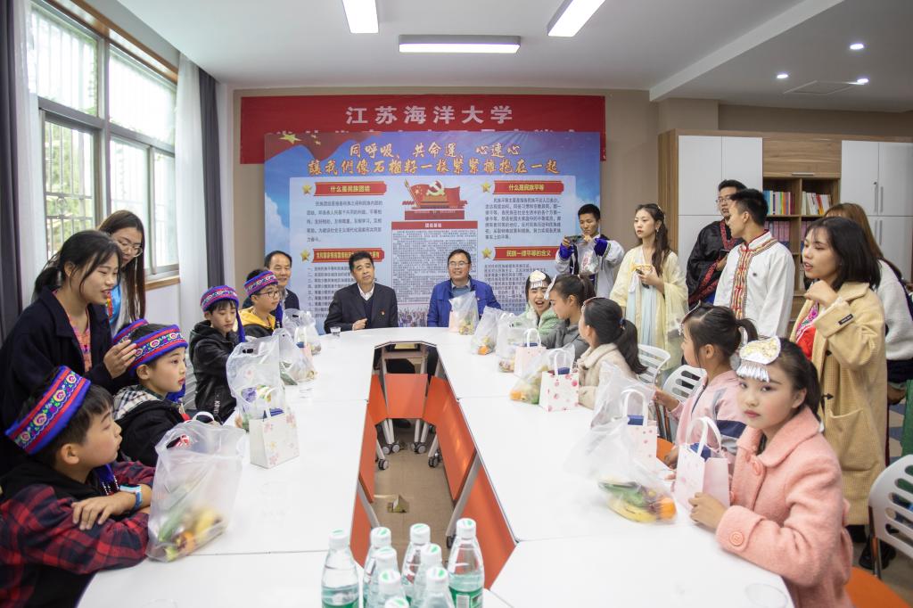 10月25日上午,校党委统战部与阜宁县芦蒲民族小学联合开展了主题为“大手小手携手行同心共筑海洋梦”的民族团结教育活动。来自芦蒲民族小学的十余名师生身着鲜艳的民族服装,与我校党委组织部、党校、党委统战部、机关党委全体人员,及我校少数民族学生代表一起,参观海洋馆、图书馆、实验室,共同度过了一个意义特殊的周末。