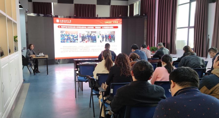 11月18日下午,校党委常委、宣传部长杨雪英教授应邀为机械工程学院作“全面推进课程思政建设,加快构建‘三全育人’的体制机制”的专题报告,机械工程学院院长张元良主持报告会,学院全体教师聆听了报告会。