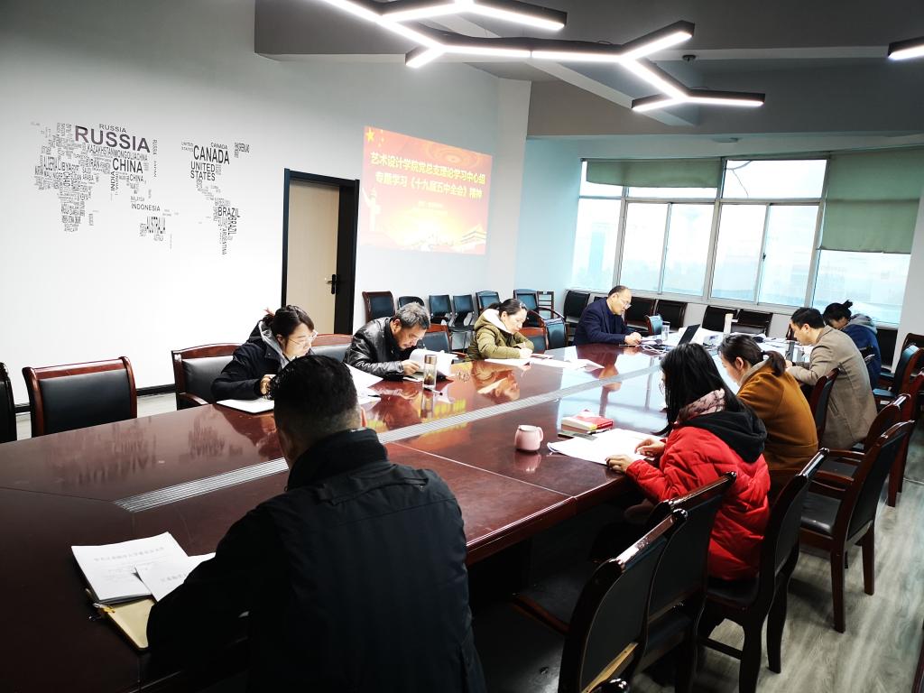 11月26日上午,艺术学院党总支书记李春主持召开理论学习中心组(扩大)集中学习会,专题学习党的十九届五中全会精神。学院总支委员、非党员领导班子成员,以及各支部书记参加了学习。