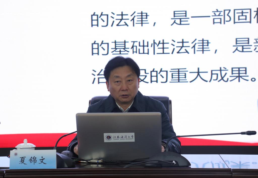 11月27日上午,文法学院在会议中心黄海厅举办了《中华人民共和国民法典》(以下简称《民法典》)讲座,讲座由江苏省社会科学院党委书记、院长夏锦文教授主讲,文法学院党委书记吴价宝教授主持,文法学院法学系师生现场聆听了讲座。