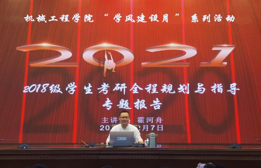 为了让学生了解最新的考研动态,明确考研意向,进行科学规划,12月7日下午,机械工程学院在会议中心黄海厅举办考研全程规划与指导专题报告会。本场报告会由教育部大学生在线考研顾问、全国大学生职业规划专家霍河舟主讲,学院全体2018级本科生聆听了报告。