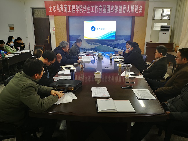 12月9日下午,土木与港海工程学院召开学生工作夯基固本铸魂育人推进会。学院党政领导、全体班主任、全体辅导员参加会议。会议由学院党委副书记钱汉珍主持。