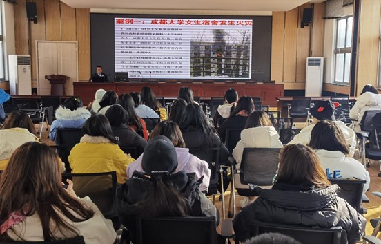 周明结合近年来国内各高校发生的典型火灾事故,通过大量的影像、图片资料,向师生们讲解消防四个能力,即检查和消除火灾隐患能力、扑救初级火灾能力、组织疏散逃生能力、消防宣传教育能力。分析实验室、宿舍、食堂、图书馆等校园里存在的火灾隐患和火灾处理办法、逃生自救等消防知识。介绍了消防设备灭器的种类、功能,现场演示了常见灭火器正确使用方法。他呼吁师生要正确使用手机充电器,不要一边充电一边玩手机。坚决杜绝在宿舍抽烟、使用大功率电器和明火,要经常查检查宿舍插排和电线,防止线路老化、过载等引发火灾事故。