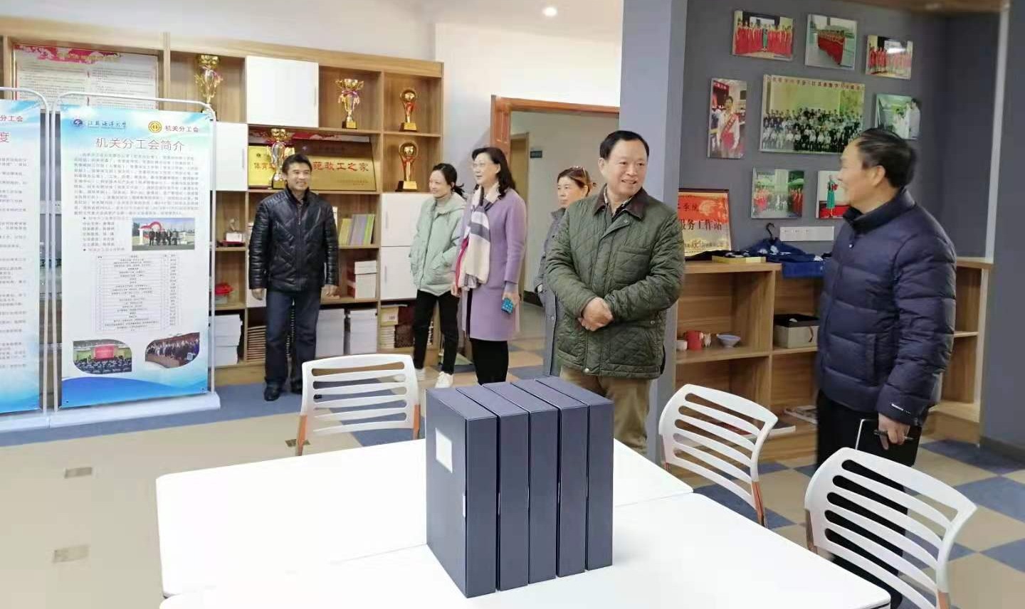 史顺良一行首先来到行政楼一楼机关教工之家活动室,详细察看了教工之家创建宣传展板和档案材料,并向机关分工会授予“模范教工之家”匾牌,对机关分会教工之家创建工作予以充分肯定。随后,又分别到海洋技术与测绘学院和应用技术学院开展“教工之家”授牌仪式。在授牌仪式上校工会主席万洁感谢各单位党政领导对工会工作支持,并希望各分工会充分发挥二级“教工之家”的重要作用,让教职工充分感受到“教工之家”的温暖,不断促进基层工会规范化建设,增强工会基层组织的凝聚力、吸引力和创造力。