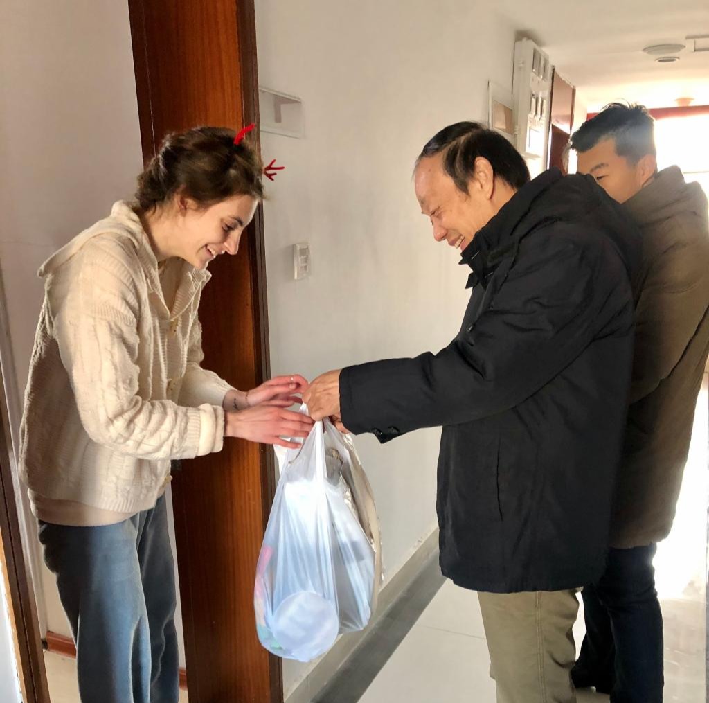 近期随着超强寒潮南下, 连云港气温大幅下降,舒小平嘱咐在校留学生关注天气变化,及时添衣保暖,并一一为同学们送去医用口罩和暖贴等防疫、防寒小礼物。他同时提醒大家近期国内疫情呈零星散发和局部聚集性暴发的叠加态势,随着寒假临近人员流动将迎来高峰,同学们要继续按照学校的防疫要求做好个人防护,在学习和生活上遇到困难时可以及时与国际交流与合作处及学院老师联系,寒假期间不要外出,在连云港度过一个快乐、健康、祥和的春节。