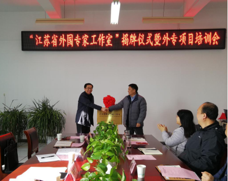 会上,范亚松和缪泉明共同为我校获批的江苏省外国专家工作室揭牌。会后,杜强对外专项目申报进行了政策解读和辅导。