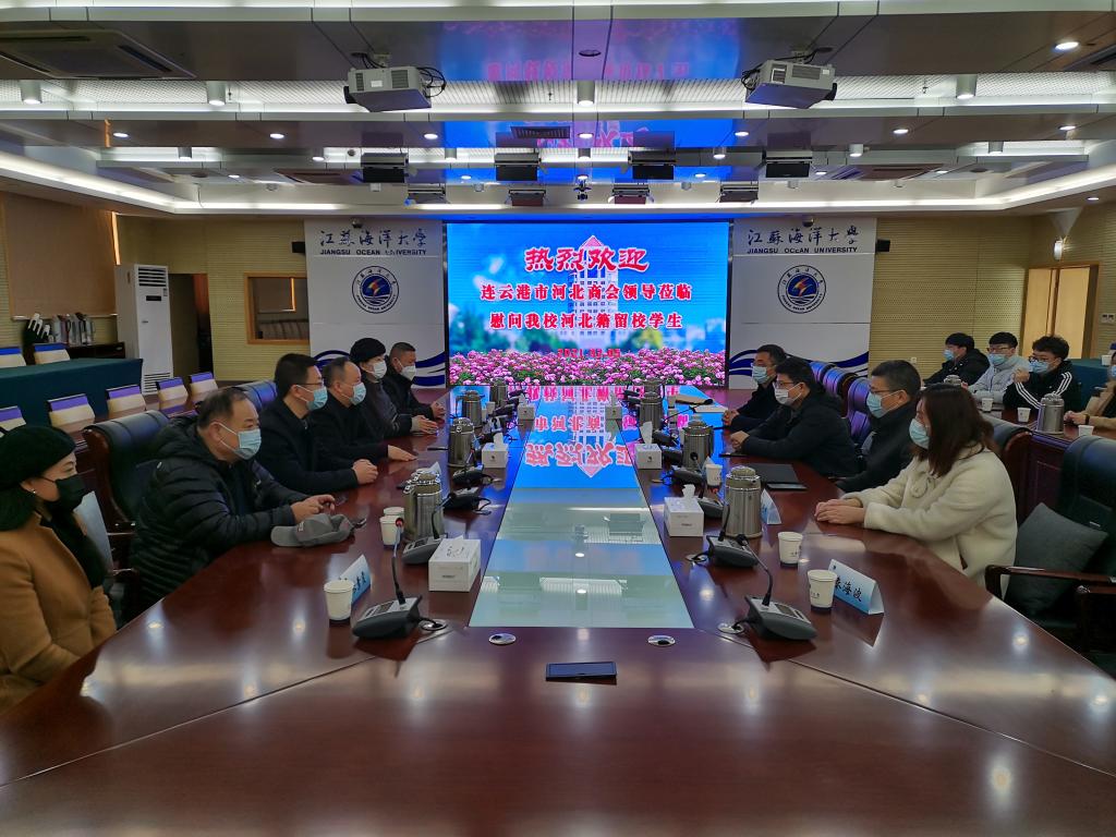 2月5日上午,连云港市工商联副主席张继武、连云港市河北商会会长刘晓光一行人来我校看望因疫情留校的河北籍学生,并带来节日的祝福与慰问,校党委学生工作部、研究生工作部的有关负责同志一同参加本次活动。