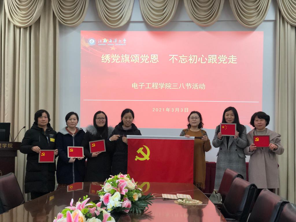3月3日下午,电子工程学院27名女教师齐聚电子楼314会议室同绣党旗、共颂党恩,庆祝“三八”妇女节、献礼党的百年华诞。