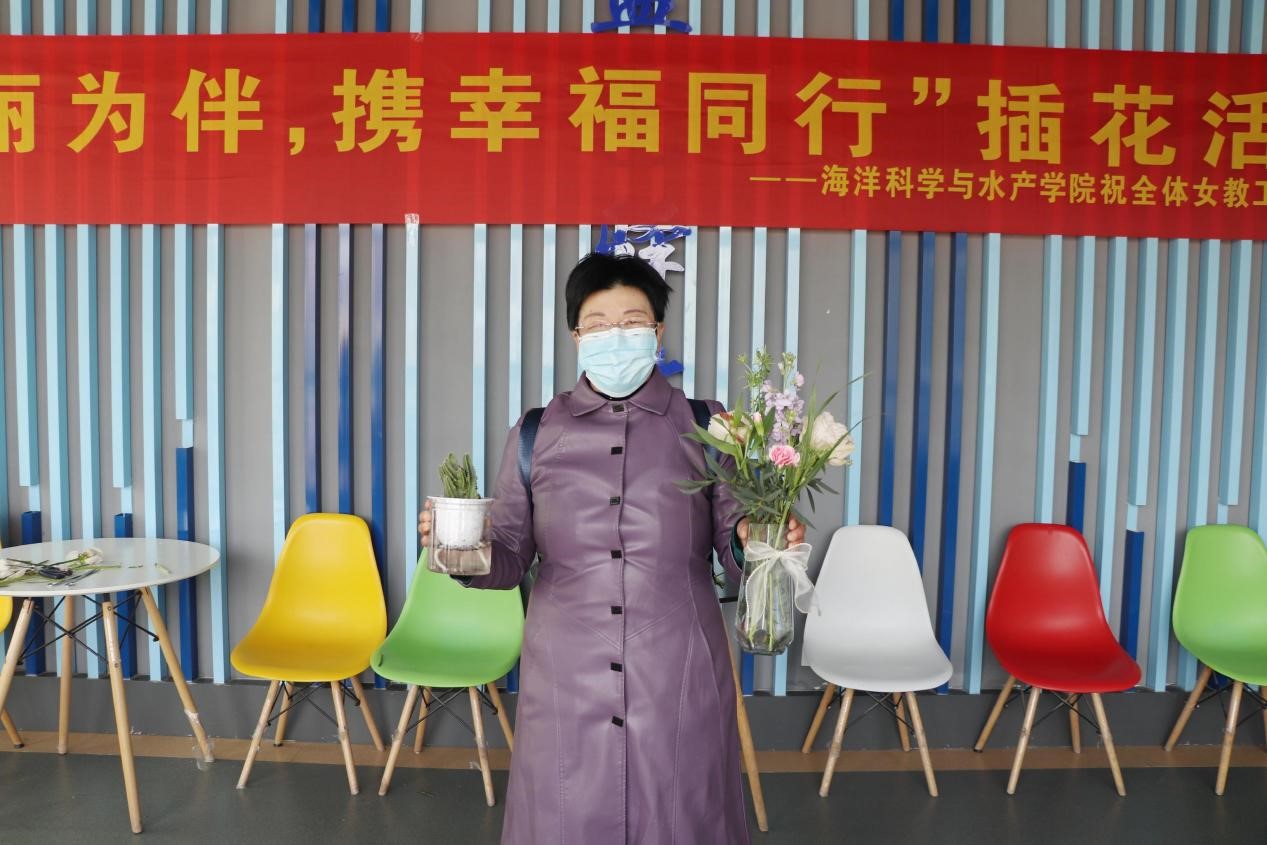 3月8日下午,为庆祝第111个“三八国际妇女节”,丰富我院广大女教职工的精神文化生活,激励广大女教职工弘扬自尊、自信、自立、自强精神,海洋科学与水产学院在海洋楼蓝色驿站举办“与美丽为伴,携幸福同行”主题插花活动。