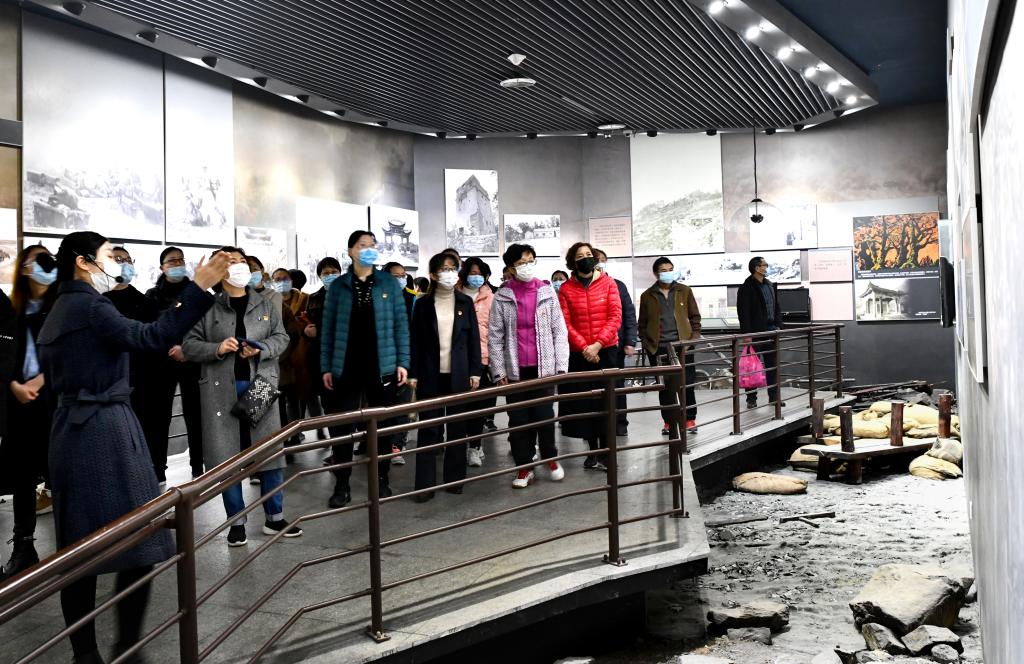随后,在解说员的引导下,大家参观了馆内以图文、雕像等形式生动再现的连云港市宏伟壮丽的革命历史,在一组组展板、在一件件展品面前,大家认真观看,驻足沉思。通过认真倾听讲解和观看各展厅的文字介绍、图片、影像和珍贵实物,大家全面了解我市在“五四”运动、土地革命战争、抗日战争、解放战争时期的革命斗争史,全面了解了我市社会主义建设时期、改革开放加快发展阶段取得的伟大成就以及美好愿景。