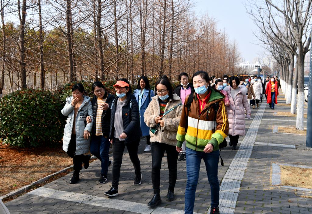 活动开始,大家从学校一号门步行出发,沿苍梧路向东——学院路——向南至连云港市革命纪念馆。早春的天气还让人感到湿寒,但仍然挡不住女教职工积极参与的热情。