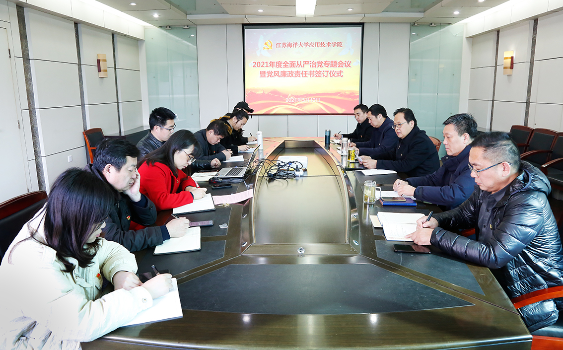 3月12日上午,应用技术学院在行政楼会议室举办2021年全面从严治党专题会议暨党风廉政建设责任书签订仪式,学院党委书记周清华、院长丁兆奎、党委副书记万金店,副院长李明金、隋福利,全体党支部书记与科办负责人出席会议。会议由丁兆奎主持。