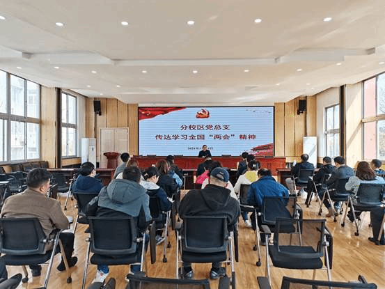 张振松强调:一是要进一步提高政治站位,认真学习宣传落实好全国两会精神,要将学习全国两会精神,特别是习近平总书记两会期间重要讲话精神作为当前一项重要政治任务,要乘学史明理之势,进一步深化认识,将学习成效迅速转化为推动工作的强大动力;二是要守立德树人初心,要在认清使命、强化担当上下功夫,要在管理育人、服务育人上求实效;三是要把握新发展阶段,贯彻新发展理念,在党史学习教育中激发内生动力,做到学史明理、学史增信、学史崇德、学史力行,实现学党史、悟思想、办实事、开新局,奋力推进分校区的高质量发展,以优异成绩向建党100周年献礼。