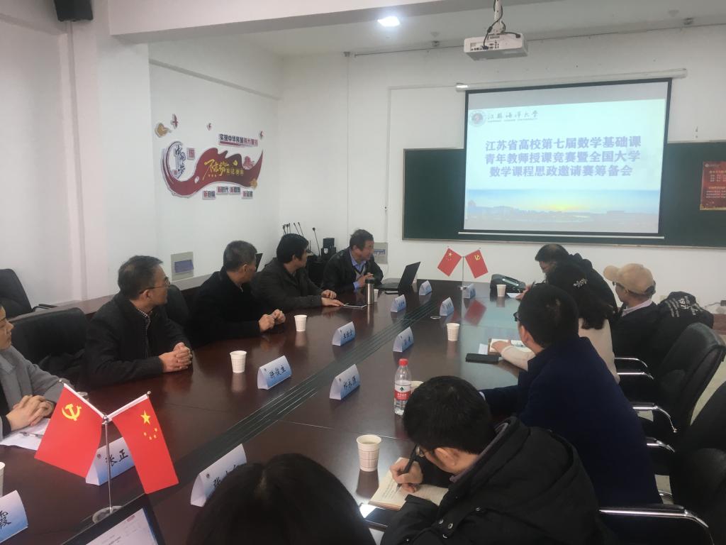 江苏省高等学校数学教学研究会理事长王栓宏教授、教研会青年教师授课竞赛工作委员会主任姚泽清教授、我校理学院副院长孙靖教授等13人参加了会议,讨论决定了本次大赛组委会的组成方式及赛会通知,会议取得圆满成功。