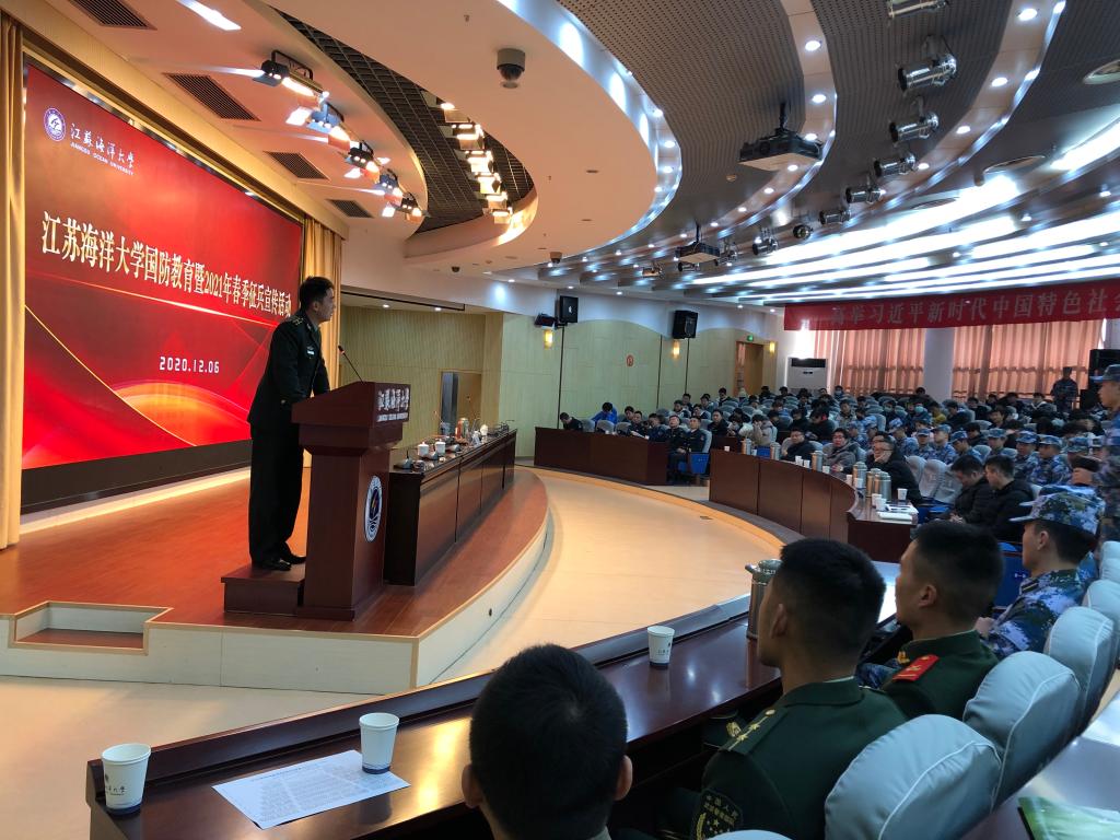 二是积极开展征兵动员,应征入伍政策实现全覆盖。2020年12月6日,校武装部会同市征兵办、海州区武装部在会议中心黄海厅举办征兵工作宣讲会,解读大学生答应入伍相关政策,并邀请海军大连舰艇学院高永庆大校做了国防教育讲座,280多名在校大学生参加了宣讲活动。在校园内发放应征入伍宣传册1000多本。