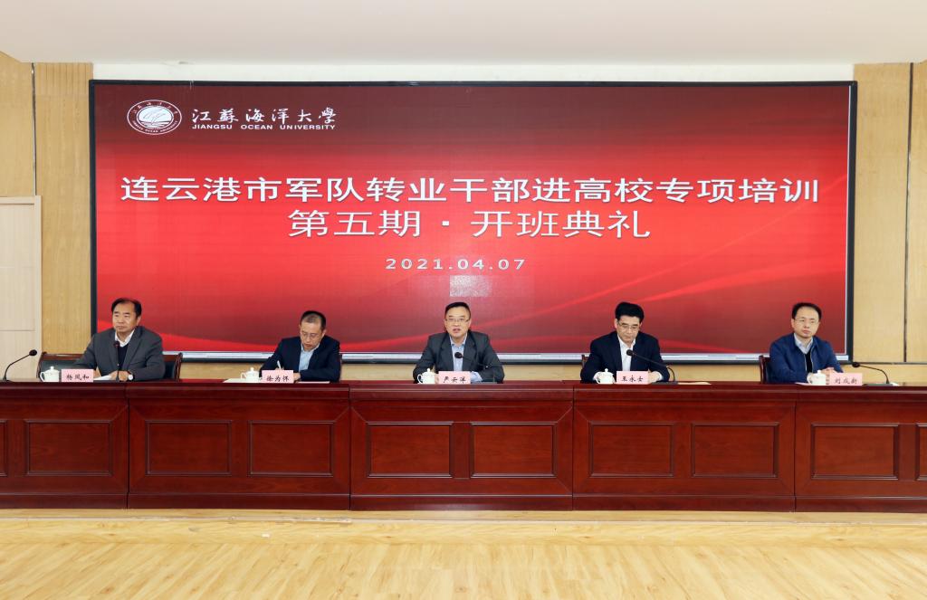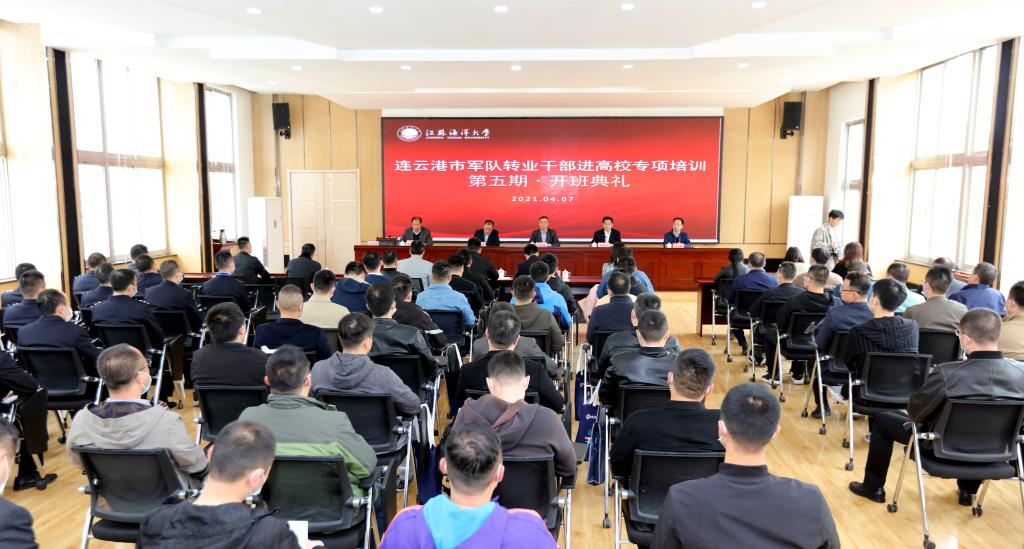 4月7日上午,连云港市第五期军转干部进高校专项培训开班典礼在我校通灌校区诚意楼报告厅举行。副校长严云洋,市退役军人事务局党组书记、局长王永士,市退役军人事务局党组副书记、副局长徐为怀,市委组织部干部队伍建设规划办公室主任刘成新以及市公安局、市财政局、市退役军人事务局的相关人员,培训老师、参训学员共90余人参加了典礼仪式。开班典礼由继续教育学院院长杨凤和主持。