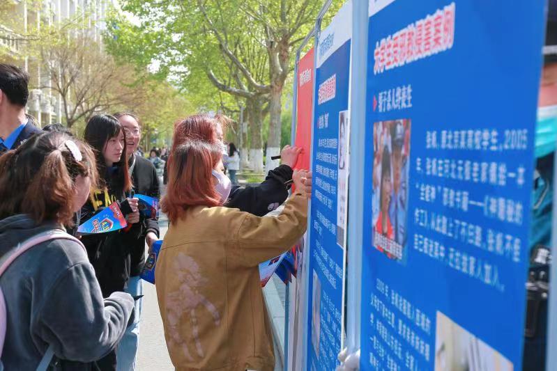 4月15日,党委保卫部与相关部门协调联动,在苍梧校区组织开展反邪教警示教育进校园活动,以线上线下相互结合的方式营造浓厚的反邪教校园氛围。校党委副书记史顺良参观反邪教警示教育进校园展板,并与现场学生亲切交流。
