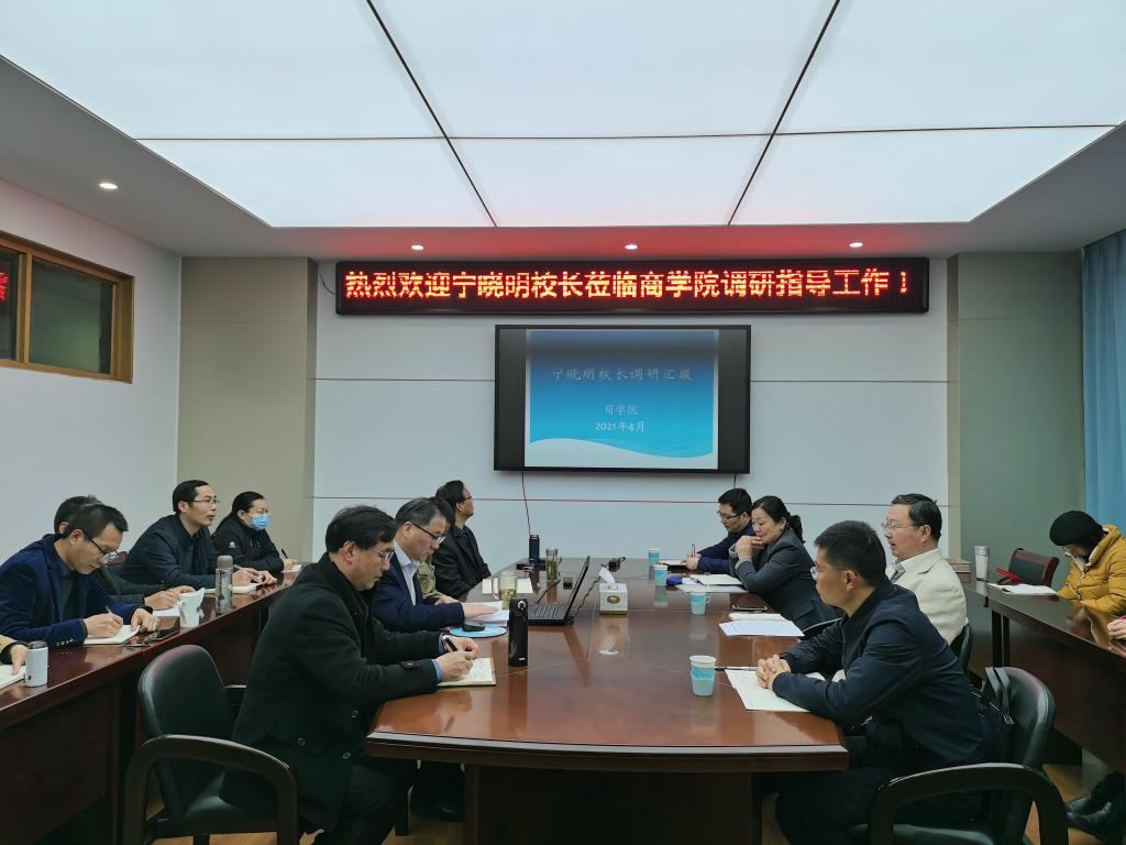 为了进一步推动学校内涵建设,深入了解各学院工作现状,4月24日下午,校长宁晓明一行到商学院调研和指导工作,就商学院加强师德师风建设、提高教师科研产出效率、聘期考核和岗位聘任等问题进行调研并听取老师们的意见和建议。