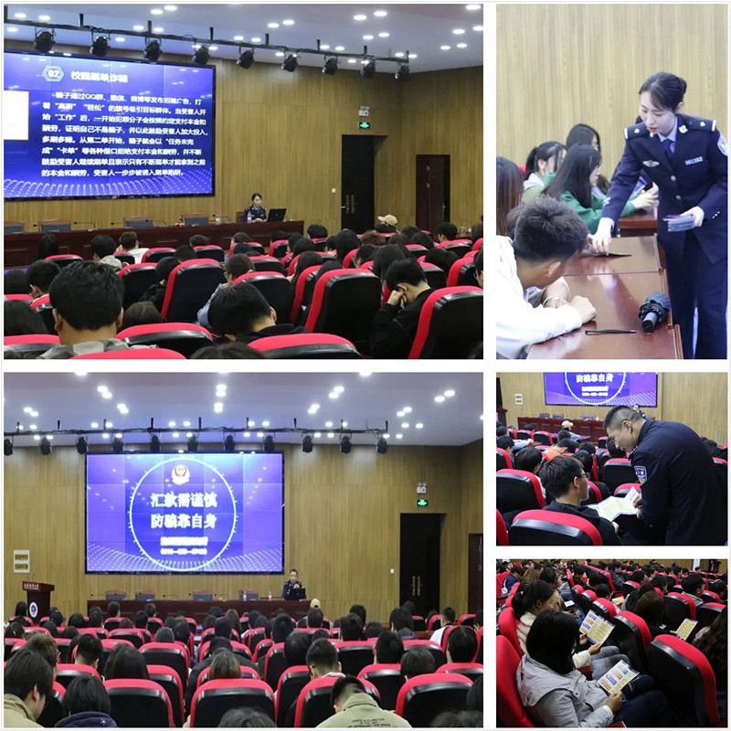 为了贯彻习近平总书记对于打击治理电信网络诈骗犯罪工作作出的重要指示精神,进一步提高学生对于电信网络诈骗的鉴别力和防范意识。近日,徐州铁路公安处连云港站派出所政委邹永安一行5人到应用技术学院开展“送安全”反电信诈骗宣传讲座。学院班干部、安全委员等200余人参加了此次讲座。