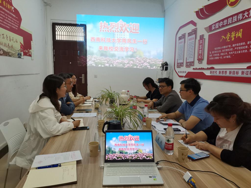 为加强兄弟院校交流,互鉴工作经验,5月18日下午,西南科技大学党委学生工作部副部长周凤生一行4人来我校调研。校党委学生工作部陈德翼、王楠,辅导员蒋莹莹、马奔、仲伟雨等参加了交流。