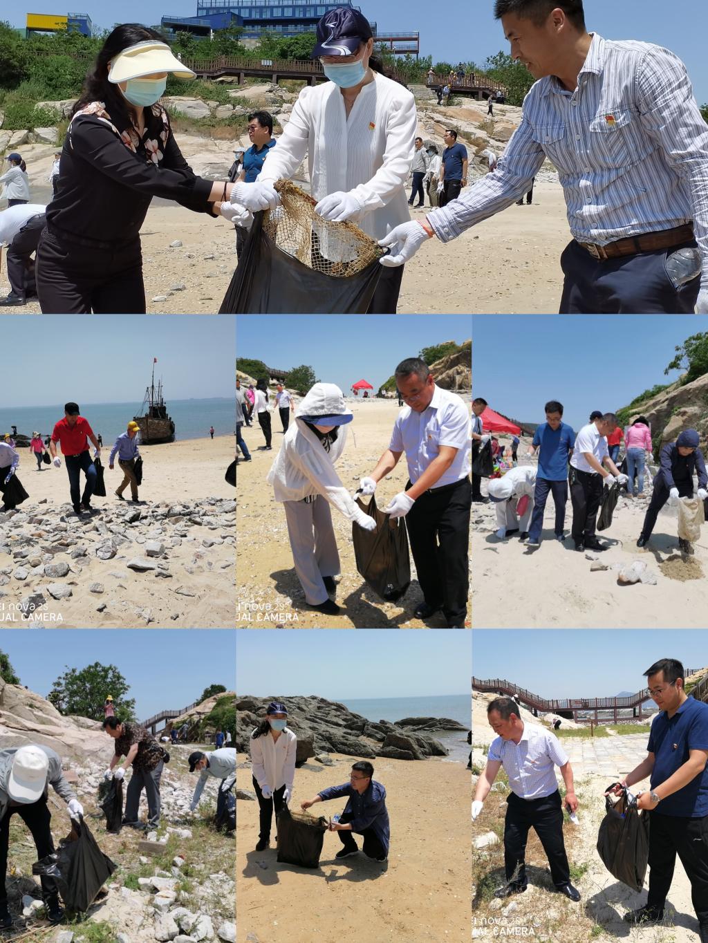 参观后,教师们来到羊山岛海滩清理海滩垃圾,塑料、泡沫、废弃渔网、废铁……可以看到,海洋垃圾大多来自我们的日常生活领域,清理海滩垃圾是一种很好的宣传教育,让我们自觉增强了保护海洋环境的意识。