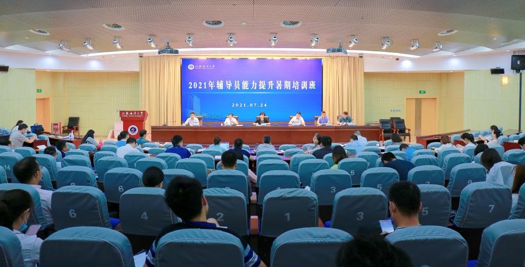 为深入学习贯彻习近平新时代中国特色社会主义思想以及习近平总书记在庆祝中国共产党成立100周年大会上的重要讲话精神,提升我校辅导员队伍专业化、职业化水平,7月24日至26日,我校在会议中心黄海厅举办辅导员素质能力提升培训班。副校长李梅英出席开班仪式并作动员讲话,各学院副书记、全体辅导员,党委研工部、党委学工部全体成员,宿舍管理员共计100余人参加了培训,开班仪式由党委学生工作部部长朱国军主持。