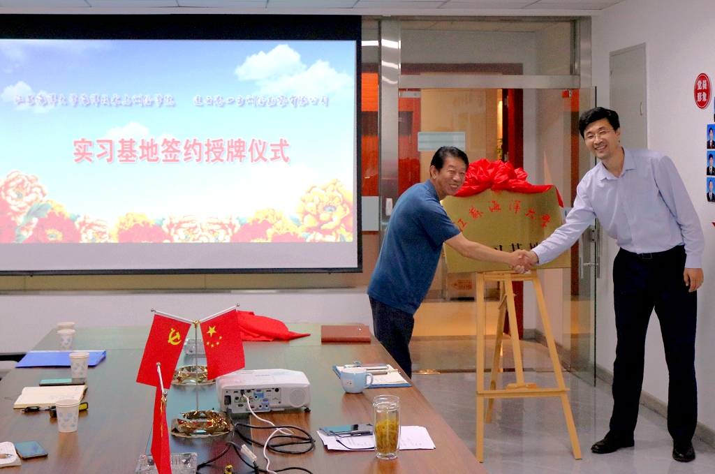 张志明和孙佳龙分别代表双方首先介绍了公司和学院的事业发展情况,希望在近20年友好关系的基础上进一步深化务实合作,着力建立人才培养和产教学研全方位联系,培养更多优秀人才到公司创新创业,同时加强资源共享和应用性科研项目对接,实现合作共赢,为地方经济和社会发展服务。随后,孙佳龙和张志明共同为我校教学实习基地揭牌,并参观了公司生产部、检测部等部门,与现场工作人员进行了交流。