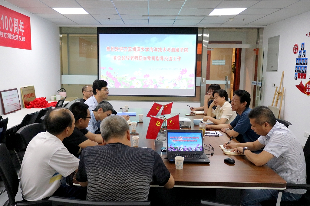 为了进一步深化校企产教学研合作,9月3日下午,海洋技术与测绘学院院长孙佳龙带队走访了连云港四方测绘勘察有限公司,公司总经理张志明、副总经理张息秀、总工徐德伟和生产部经理徐兢兢等接待了孙佳龙一行。