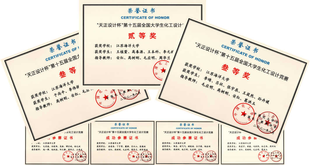 8月,“天正设计杯”第十五届全国大学生化工设计竞赛华东区比赛成功举行。经过前期各省(市)的省赛选拔,从来自华东区60所高校481件作品中产生60件作品进入本次决赛。我校学子精心准备,不畏强手,顺利晋级,获得二等奖一项、三等奖两项。