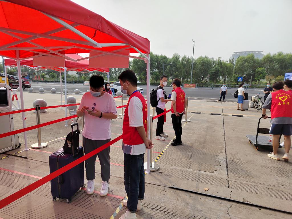 9月17日上午,学生纷纷返校,学院组织学生党员志愿者分别于1号门、4号门协助做好学生的安全防护工作,严格按照测体温,查验身份信息、健康码和通行码等流程做好学生到校签到工作,同步做好防诈骗主题宣传,让返校学生关注“防骗金钟罩”公众号,提高安全防护意识,为创造安全的校园环境提供了有力的保障。与此同时,志愿者也为返校学生提供贴心的行李搬运服务,切实减轻返校学生的行李搬运压力。