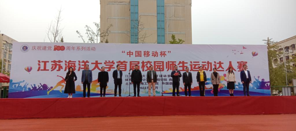 10月20日下午3时,江苏海洋大学首届校园师生运动达人赛在苍梧校区西运动场隆重开幕。校领导史顺良、严云洋、朱国军,中国移动连云港分公司副总经理姜田先出席开幕式。副校长严云洋主持开幕式。相关学院和职能部门负责人、150余名运动员和800多名观众参加开幕式。