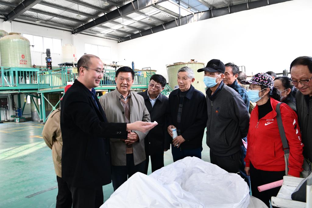 10月30日上午,江苏海大老科协教授、专家等一行36人,乘车前往东海县石湖乡——连云港高品再生资源有限公司。首先召开座谈会,座谈会由连云港市科技服务研究会会长文西芹教授主持。我校97级化工分析校友,高品再生资源有限公司董事长兼总经理、党总支书记张宇发表了热情洋溢的欢迎词,详细介绍了公司筹办、厂房及设备建设、产品性能,生产及市场状况和发展前景,以及专利技术等情况。老科协会长刘平昌教授就老科协“学党史见行动科技服务百企行活动”,以及科技服务咨询活动的意义和具体内容作了详细介绍。座谈中,曾担任张宇班主任的史继斌教授,对张宇在学校的学习和成长情况以及毕业后的创业历程做了介绍。杨敏、傅金祥、张万忠、陈勇、董剑利、王聿良等专家教授,就生产、技术、市场等问题提出了意见建议,并对董事长张宇的创业激情和奋发有为的精神表示肯定。连云港市科技服务研究会、东部企业服务创新中心3位领导也介绍了他们科技服务企业的情况。文西芹教授做了小结,并就科技服务内容谈了看法。