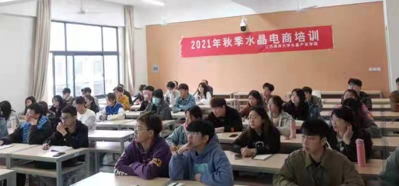 为深化校地合作与产教融合,切实加强学生实践创新能力和知识技能的培养,11月6日上午,江苏海洋大学水晶产业学院2021年秋季电商培训班在文华楼508教室正式开班,来自艺术设计学院、商学院、文法学院、外国语学院等相关专业的近60名学生参加了培训。