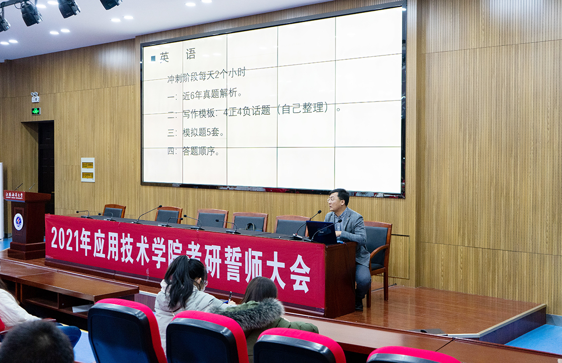 花开花落迎飞雪,又是一年考研时。2021年硕士研究生入学考试已进入倒计时。为了给考研学子加油鼓劲、缓解压力、增强信心,11月24日,应用技术学院在敦行楼报告厅隆重举行考研誓师大会。学院党委书记赵求勇、校友张拓宇出席会议,党委副书记时树奎主持会议,辅导员及2021年考研学生参加会议。