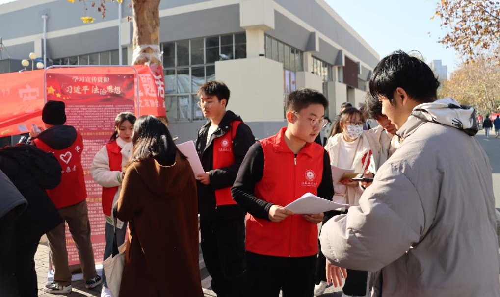 当天上午11时,活动于苍梧校区一食堂门口和通灌校区前程餐厅门口同时进行,由大学生法律之友协会社员组织开展。