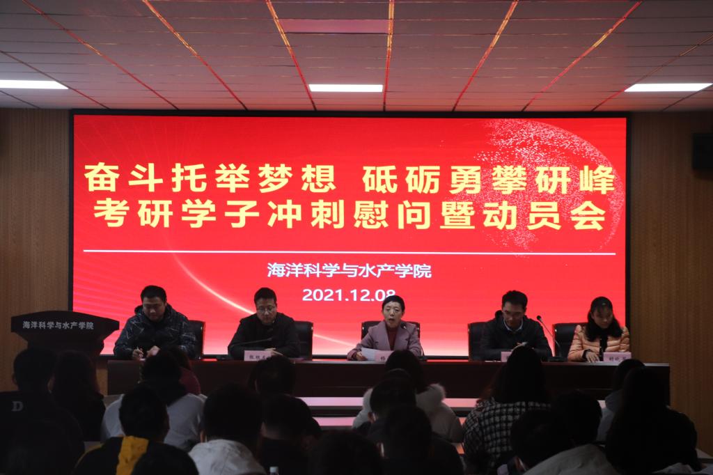 12月8日下午,海洋科学与水产学院在海洋南楼203举办“奋斗托举梦想,砥砺勇攀研峰”2022年考研学子冲刺慰问暨动员会。本次活动由院党委副书记张根友主持,院党委书记杨天华、教师代表赖晓芳和魏敏、辅导员韩振、2021级研究生代表徐一力同学以及2022年部分考研学生参加。