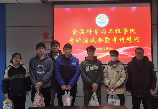 12月8日晚,食品科学与工程学院在主楼606会议室召开考研座谈会暨考研慰问活动,学院党总支书记田德勇、副书记郭利,学工办吴凡、陈丽媛及2018级考研学生参会。会议由郭利主持。