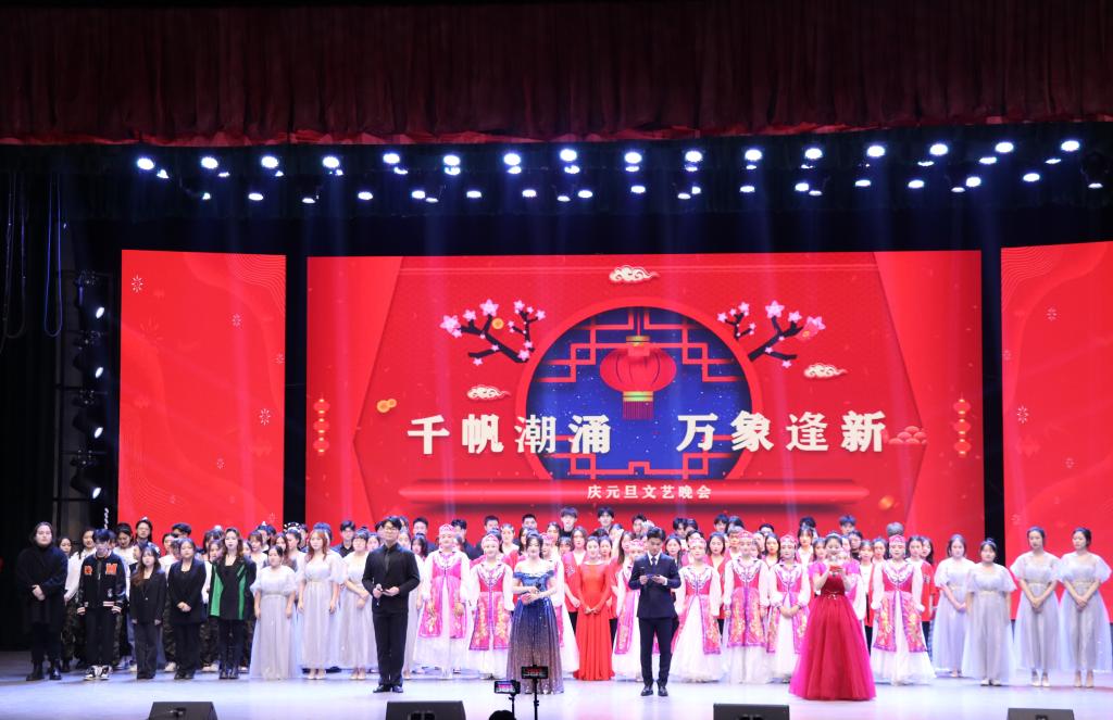 风雨砥砺,岁月如歌。12月24日晚,我校“千帆潮涌,万象逢新”庆元旦文艺晚会在苍梧校区大礼堂隆重举行。按照疫情防控工作要求,200名师生现场观看,5000余人次通过直播平台在线观看晚会。