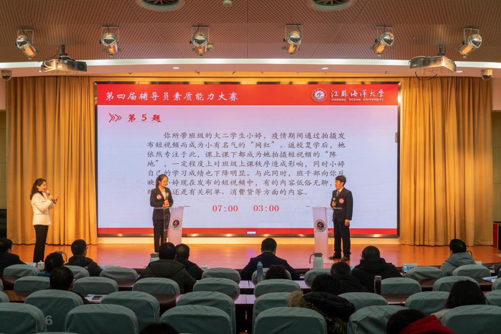 为提高我校辅导员队伍的理论和实践水平,加强队伍专业化、职业化建设,展示辅导员整体素质和精神风貌,通过比赛达到以赛促练、以赛促训、以赛促研的目的,我校举办了第四届辅导员素质能力大赛。12月24日下午,此届比赛的决赛在会议中心黄海厅举行。