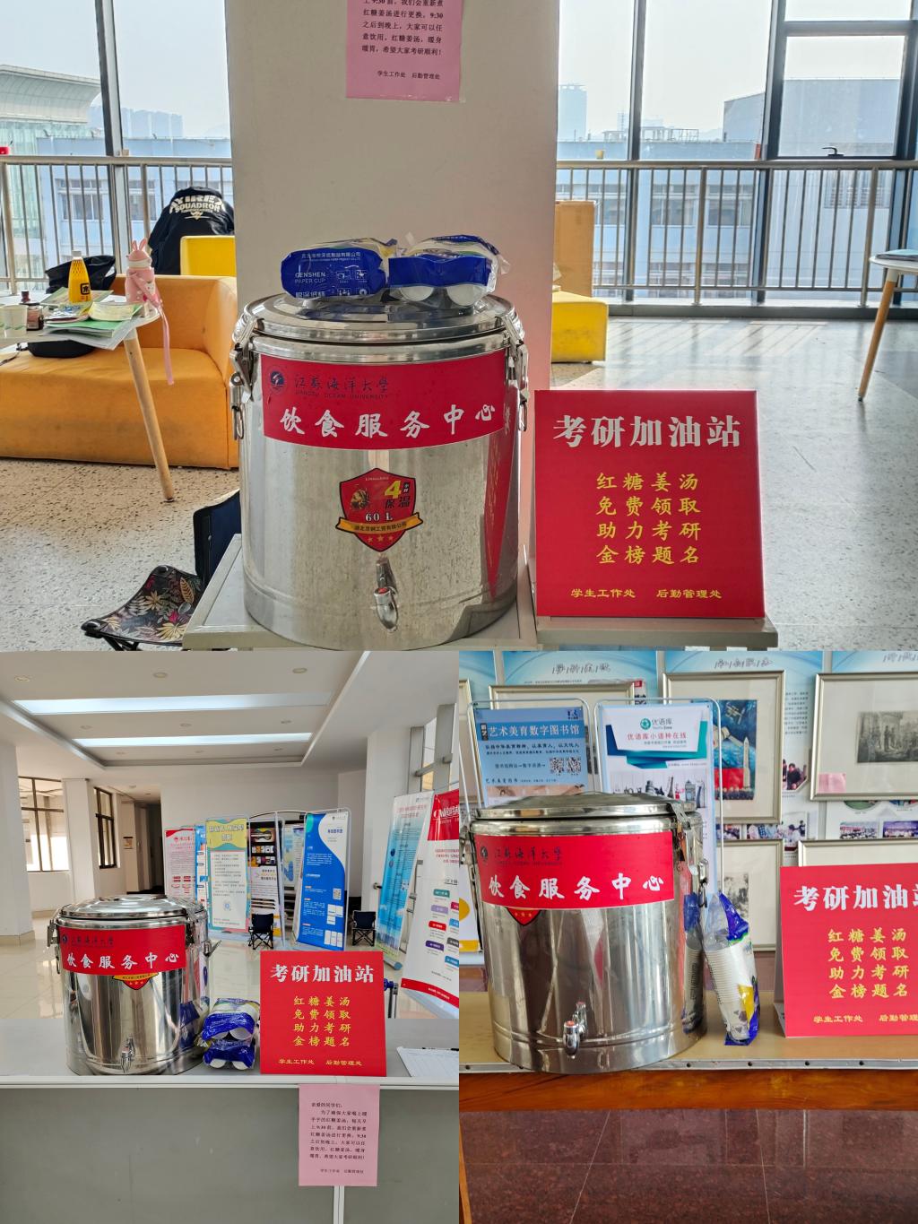 红糖姜汤暖身心。12月13日,距离全国硕士研究生招生考试还有两周,冷空气骤然来袭。为了增强学生们的抵抗力,暖胃暖身,学生工作处联合后勤管理处在图书馆、文思楼考研教室设置了考研加油站,全天候为考研学生免费提供热乎乎的红糖姜汤。喝一口,满口红糖的香甜,带着一丝丝姜的辛辣,全身都暖和起来了,考研学子们也愈发充满干劲。