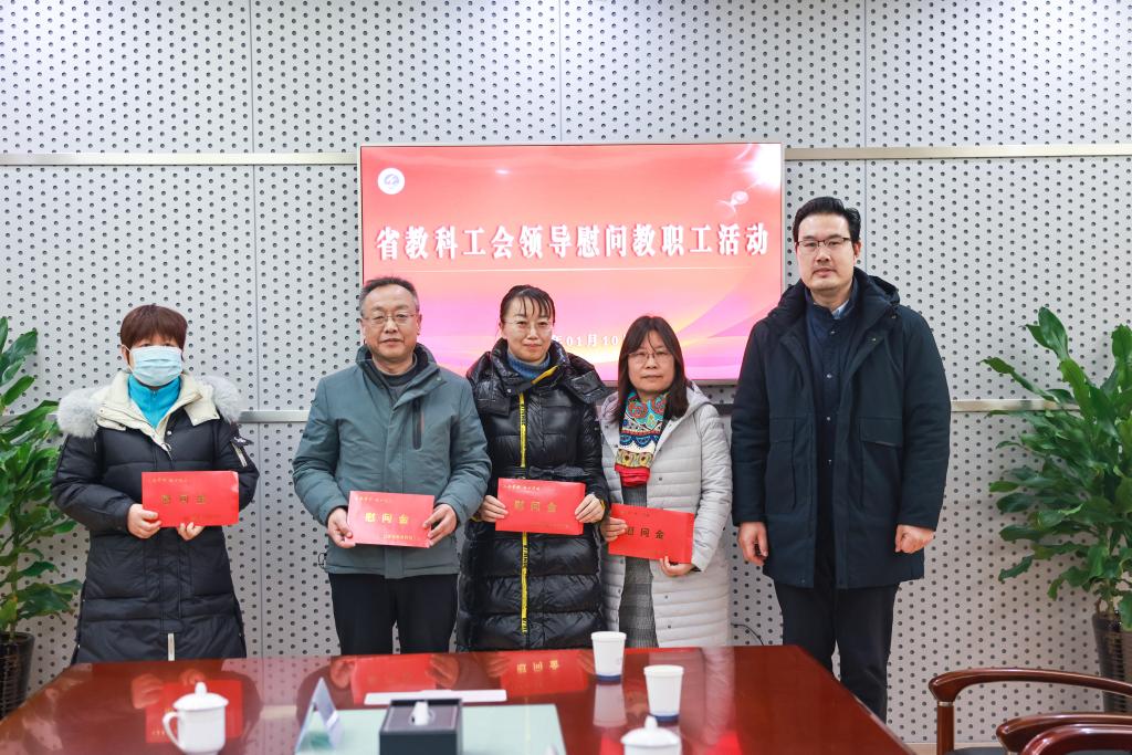 省教科工会副主席崔文华与我校教职工代表亲切座谈,了解他们的家庭生活、身体状况以及存在的实际困难,鼓励他们要保持良好的心态,勇敢面对逆境,亲自为他们送上慰问金并致以新春美好祝愿,把党和政府的关怀、工会组织的温暖切实送到困难职工的心间。