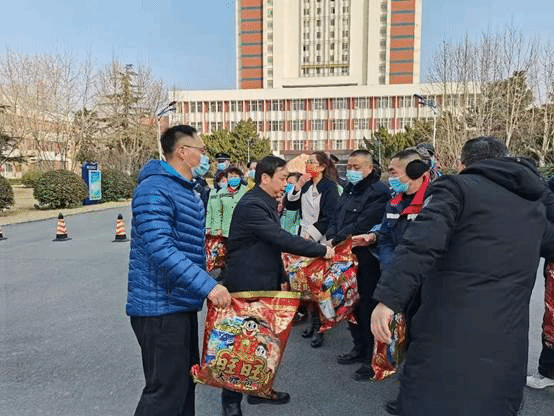 许兴友一行先后来到通灌校区西门、值班岗亭、物业值班室等值班岗位,现场指导假期疫情防控和安全保卫工作,并走访慰问一线安保、物业值班人员,询问值班情况,对大家在春节期间坚守岗位、辛勤工作表示衷心感谢,送上了美好的新春祝福,并送上节日慰问品,祝大家新年快乐。一声声问候,一句句祝福,充满着浓浓关爱。