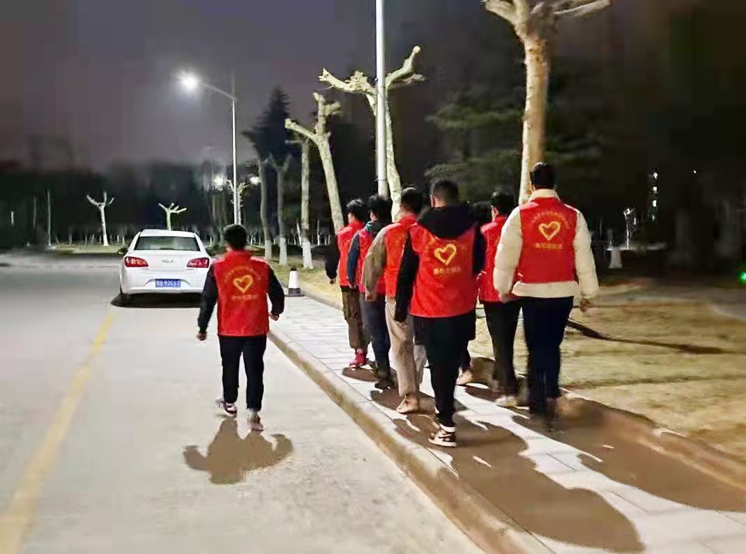 深夜,本该是休息时间,但志愿巡逻队仍行走在校园的大路上。一名巡逻队队员这样说到“我是一个兵,在部队时我们保护祖国的安全。现在穿上红马甲,戴上红袖标,我们的目的只有一个,就是守护校园平安。把每一个路过的同学都当成是我们的兄弟姐妹,提醒他们认真做好个人防护,共同战胜疫情。只要我们万众一心,没有翻不过的山,没有跨不过的坎。”