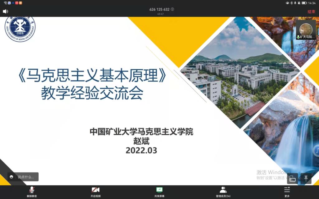 3月23日下午,马克思主义学院邀请江苏省首届思政课教学展示活动特等奖获得者中国矿业大学马克思主义学院赵斌老师作思政课教学展示。展示活动通过腾讯会议进行,由院长沈春梅主持,学院全体教师参加了活动。