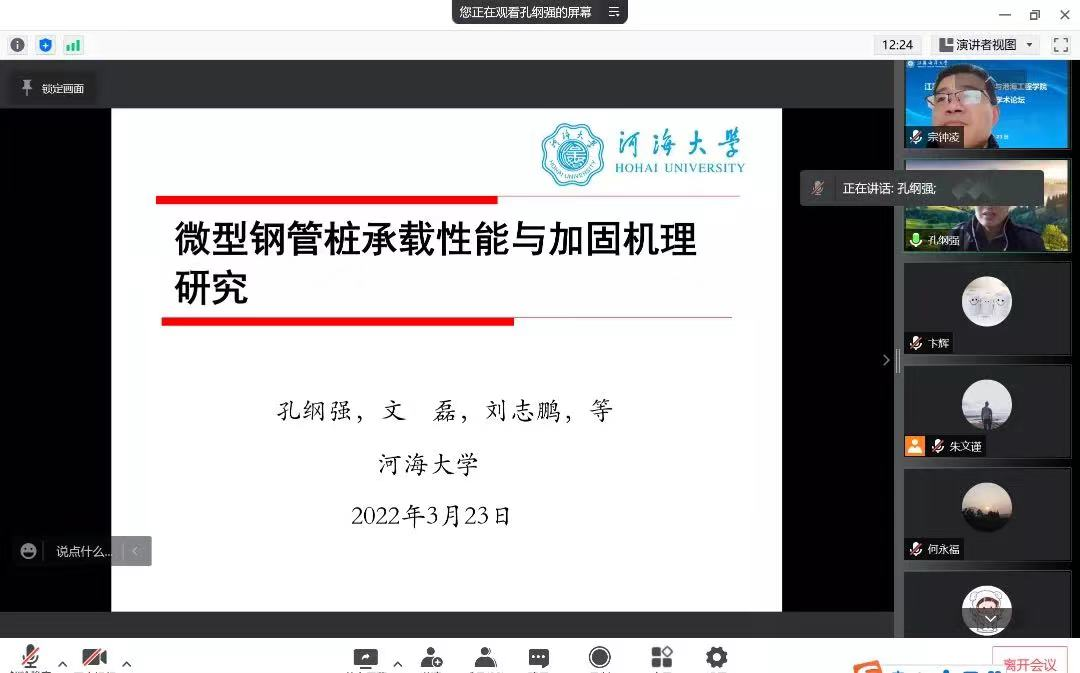 开展2022年“土墩木华”学术论坛讲座。邀请河海大学土木与交通学院孔纲强教授博导为学院师生线上讲学,加深师生对微型桩的认识、拓展研究视野、开拓科研思路、活跃学术氛围。