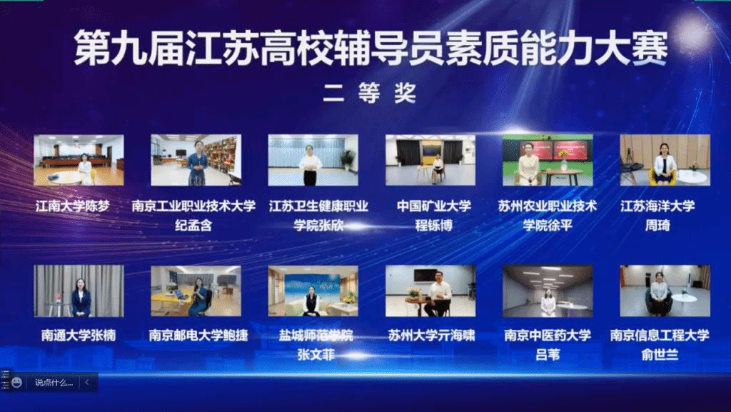 本次江苏高校辅导员素质能力大赛由江苏省委教育工委、江苏省教育厅举办,南京师范大学承办。比赛采用全新赛制,分为基础知识测试、案例研讨、谈心谈话三个环节,首次采用线上的方式举办。经过各高校遴选推荐、各片区基地赛激烈角逐和层层选拔,来自全省各高校的40位辅导员脱颖而出,进入决赛。选手们在比赛中阐述工作思路,交流工作经验,展现个人风采。
